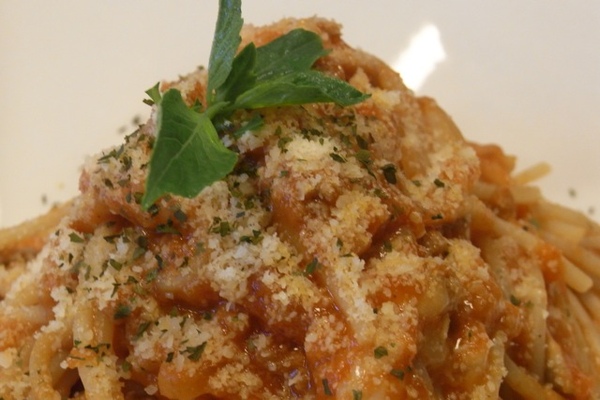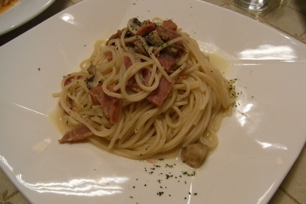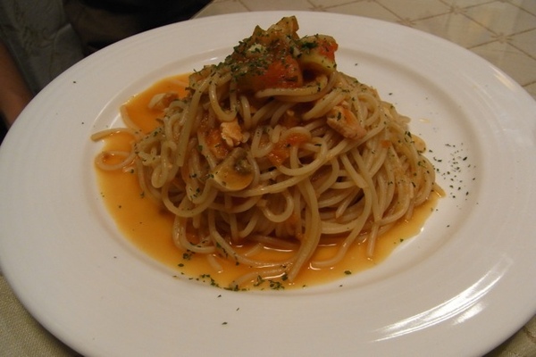 正餐是以義大利麵為主,麵條大多是一般的義大利麵麵條,但也可要求改成寬麵或筆管麵。那...我就依我吃過的幾種口味分享給大家吧! (正在思考,有我沒吃過的口味嗎? 大致上好像都吃過了,因為每月幾乎報到兩次,也很難不吃遍吧!)