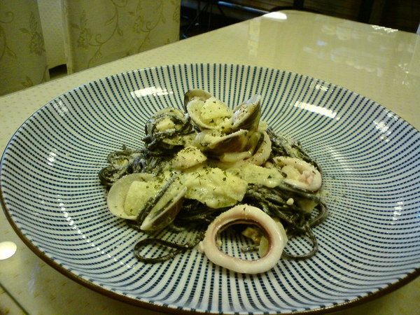 前幾次去吃義大利麵時,都沒有點過咖哩口味,因為想到咖哩跟義大利麵混合在一起,就覺得有點噁心,可是某次吃過後,連好幾次,我都點咖哩口味,它不是一般咖哩飯上淋的那種很稠的醬汁,而只有咖哩的香味和辣感,醬汁是收乾的,沒有咖哩厚重的感覺,所以跟麵條搭在一塊,味道很合,不讓人感到突兀。