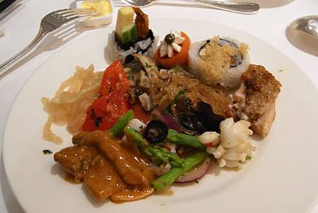 說到新羅飯店的餐點,更是讓人豎起大拇指,我認為沒有地雷食物,每道餐點都相當夠水準,食物的調味、口感與食材新鮮度真是棒! (我好想向大廚致敬哪),而且服務人員也很專業,即使盤子裡已經沒有食物,他們仍會細心的詢問是否可以收走餐盤,真是訓練有素! 午餐的時候,服務人員會倒上一杯香檳讓客人享用,雖然我很激賞他們的餐點,不過在飯店內用餐價格不斐,光是早餐大約就要台幣1300元! (這樣有沒有滅火一些)