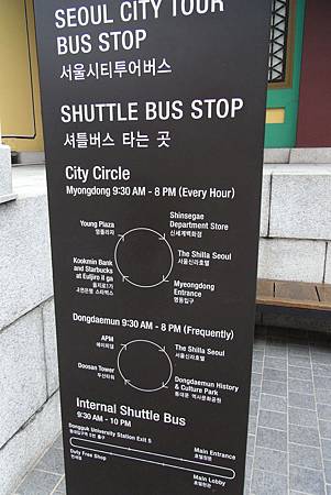 新羅飯店最被人詬病的常常是抱怨它的地點離熱鬧的購物區較遠,可是我認為這好像不是什麼大問題,因為飯店其實提供有免費的幾個景點的接駁服務,包含明洞入口、東大門、南大門、梨泰院等等,還有免費的市區導覽巴士,如果不想等車,也可以坐計程車,我從飯店坐過一次到明洞入口,車資不到台幣100元,若多人一些均分,也蠻划算的! 即使不想搭免費巴士或計程車,走出飯店,旁邊就是地鐵站了,所以並不是想像中那麼的不便利!